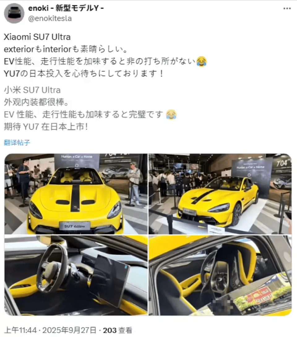 小米汽车近日在日本市场引发关注,其高性能车型SU7 Ultra于东京秋叶原完成首次公开亮相。在9月27日举办的发布会上,这款定价52.99万元人民币的电动轿跑正式进入日本消费者视野。小米科技日本株式会社副社长郑彦透露,日本市场将延续中国区的销售策略,通过智能手机门店同步销售电动汽车产品。不过,具体上市时间表尚未确定。为配合市场推广,小米同步推出1:18比例压铸模型,其中SU7 Ultra模型售价16800日元(约合人民币801.2元),普通版SU7模型定价14800日元(约合人民币705.8元)。