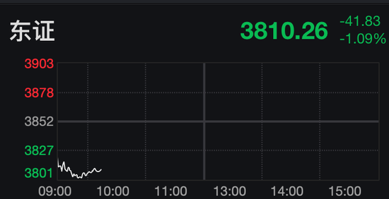 截至发稿,日本东证股价指数下跌1.09%。